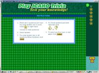 The environment: Our computing environment is fairly uniform. For better or worse, it is 100% PC. The JCAHO Trivia game is only accessed from within the work environment, so no home computers are involved. The internal network is very fast, so huge graphics are no problem.