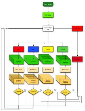 Login and security: Questionmark Perception needs at least two pieces of information to log in a user - a username and a group. We determined early on that each team would be entered into the system as a group in Perception, since team scores could easily be tracked by group. Perception can only receive these two variables from the login page. In a normal Perception setup, a participant would type in their username (and password if required) and select a group from a drop-down list of groups. However we realized we'd have to break this process up into two pieces, since most people would not know what group (team) they were in. So we created a pre-login team chart page.