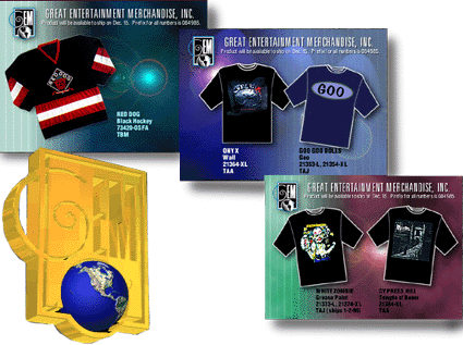 Shown above: screens from a CD Rom catalog of rock-oriented merchandise.