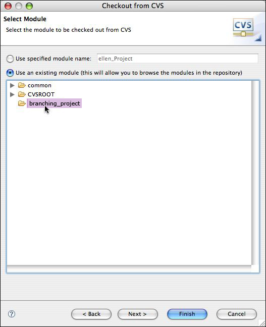 - Select the CVS repository you want to use from the list.