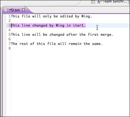 - Open f4.txt. Change line 3 to "This line changed by Wing in iter1." Save the file.