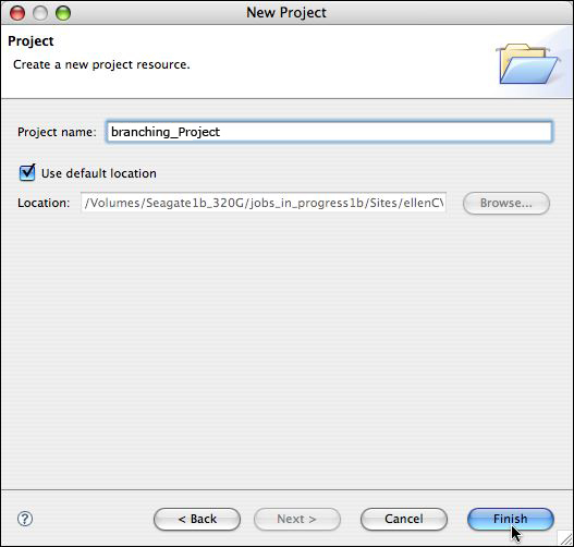 - Select the desired branch and click Finish.
