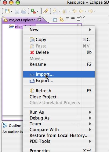 - Right click on your project folder, and select Import.