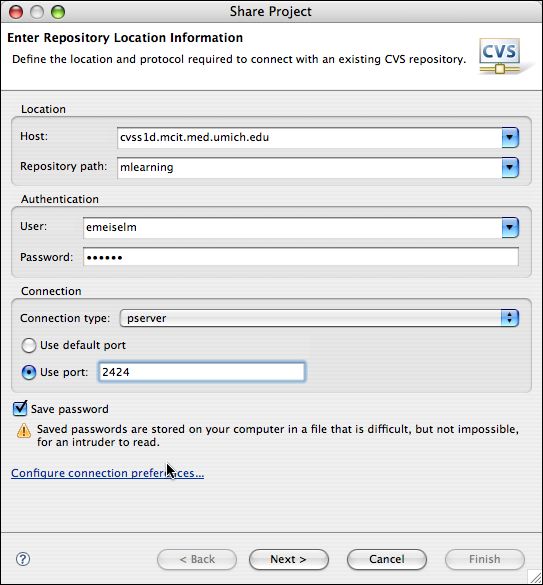Repository Login information for use with Eclipse: