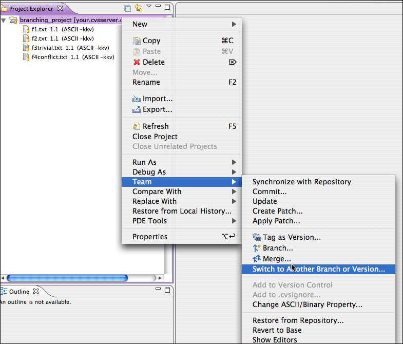Note: This tutorial is based on Paul Glezen's wonderful branching article on the Eclipse site: Branching with Eclipse and CVS, used with his permission and under the terms of the EPL license. My aim in building onPaul's tutorial is to make it more accessible for beginners.